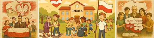 Obchody Święta Niepodległości w szkole obejmują zarówno widoczne dla wszystkich działania artystyczne i społeczne, wspólne śpiewanie hymnu, uroczysty apel, jak i chwile wewnętrznej refleksji nad współczesnym znaczeniem patriotyzmu.